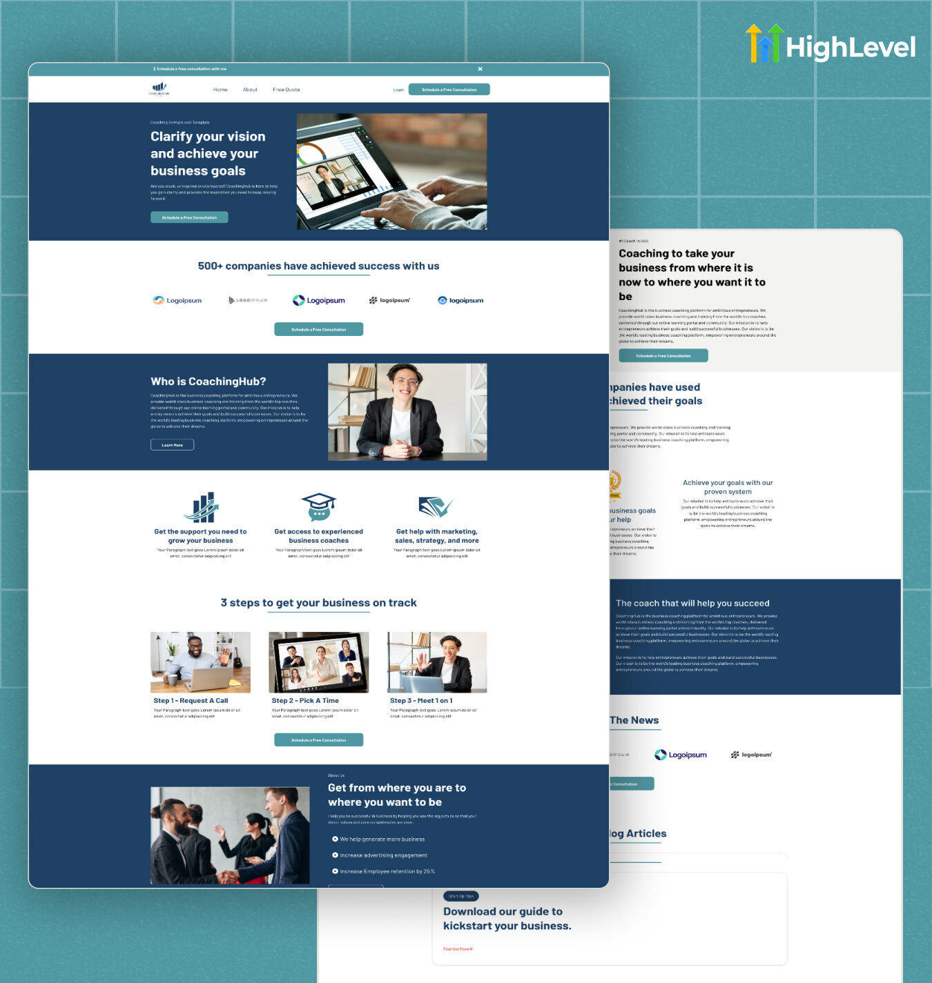 Elevate your coaching practice with CoachingHub, a specialized GoHighLevel coaching template designed to jumpstart your online presence. Perfect for both personal and business coaching services, CoachingHub combines elegance with effectiveness, ensuring your website not only looks great but also performs seamlessly.